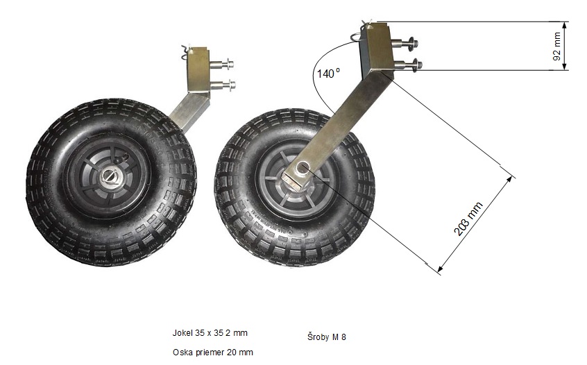 Rozmery kolesa: priemer 26 cm, šírka 8 cm. nosnosť jedneho kolieska 136 kg.